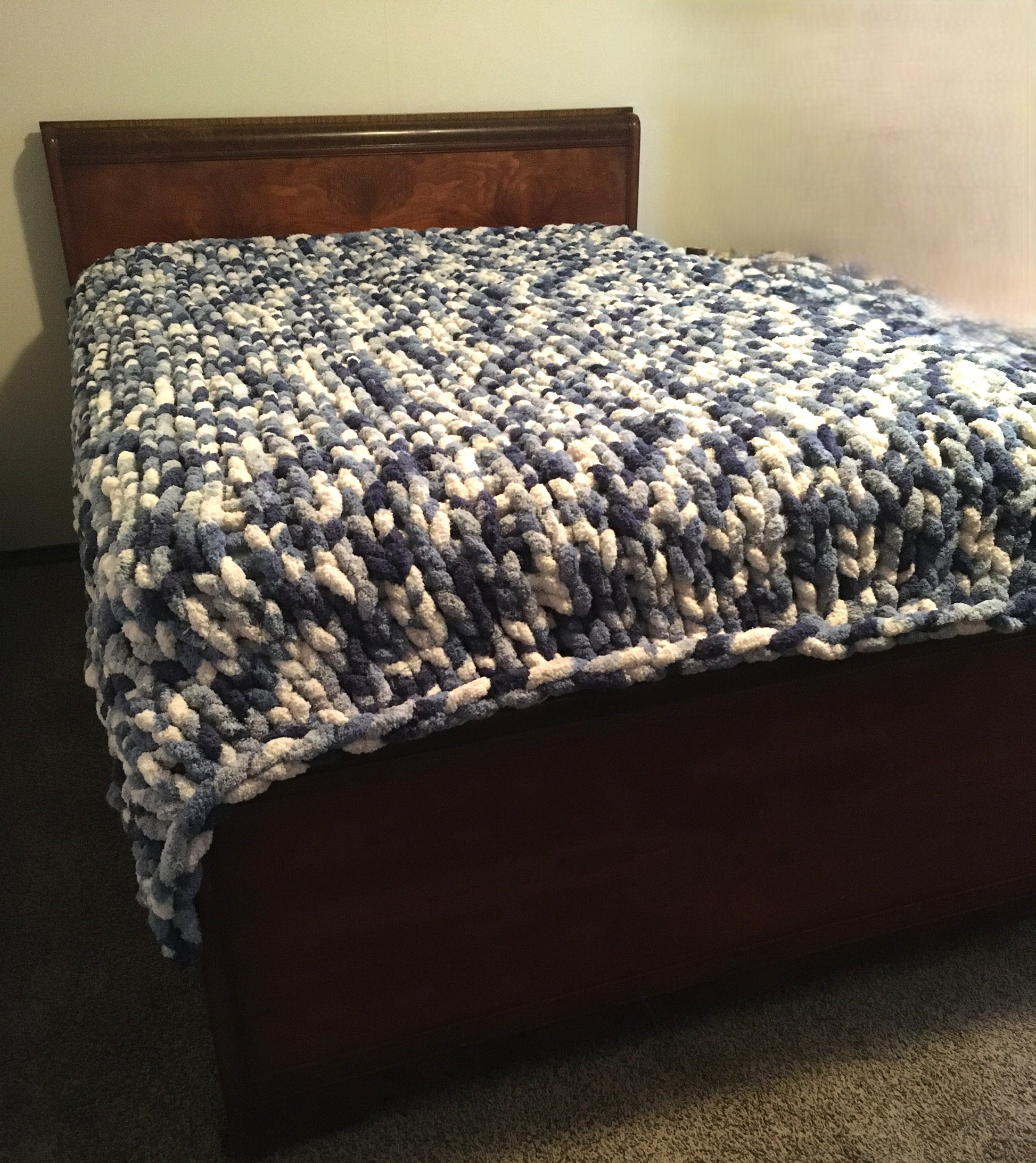 Chunky Hand Knit Blanket – Cozy Winter Throw – Thick & Fluffy – 60"x70" – Farmhouse Cottage Style